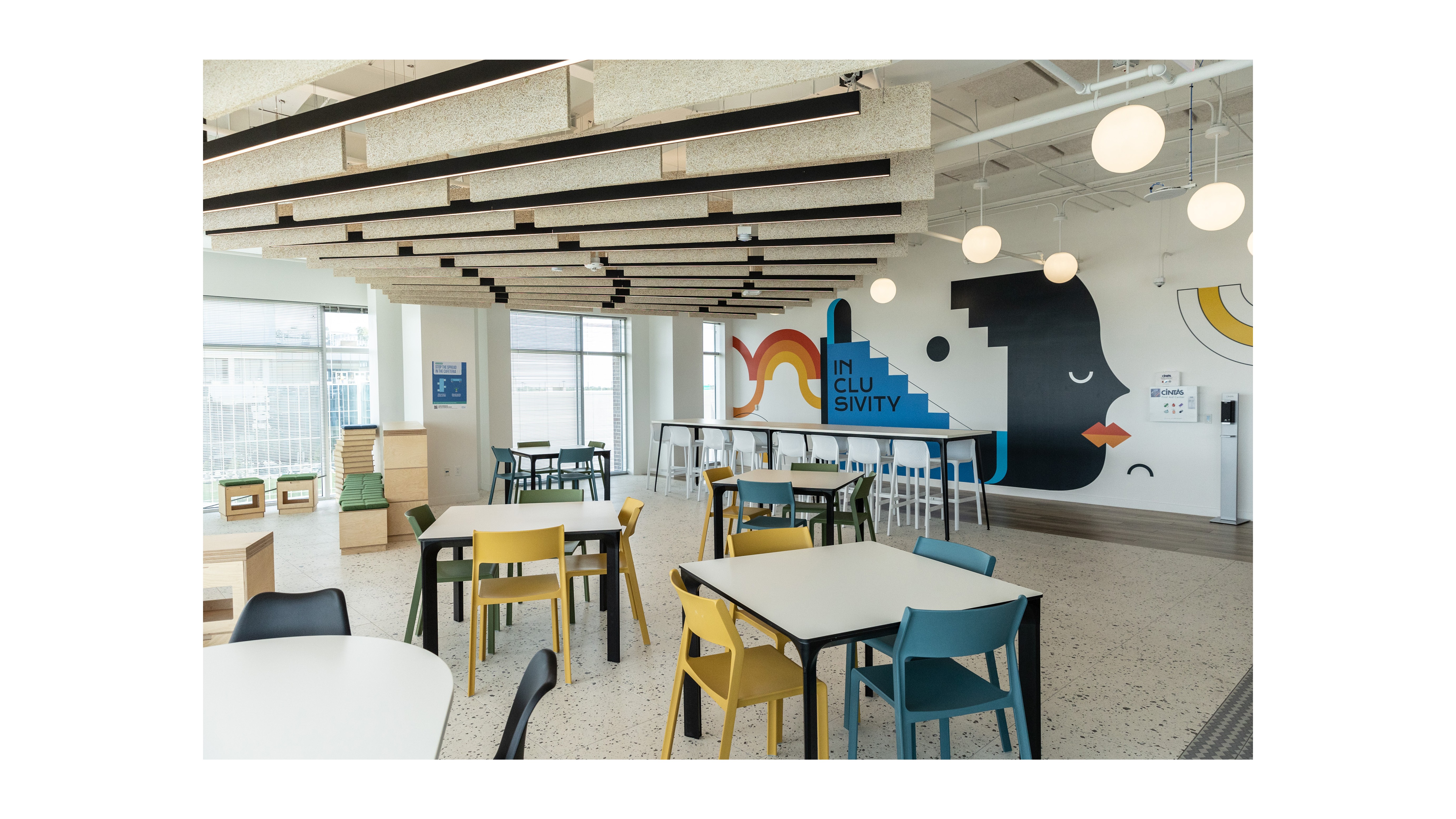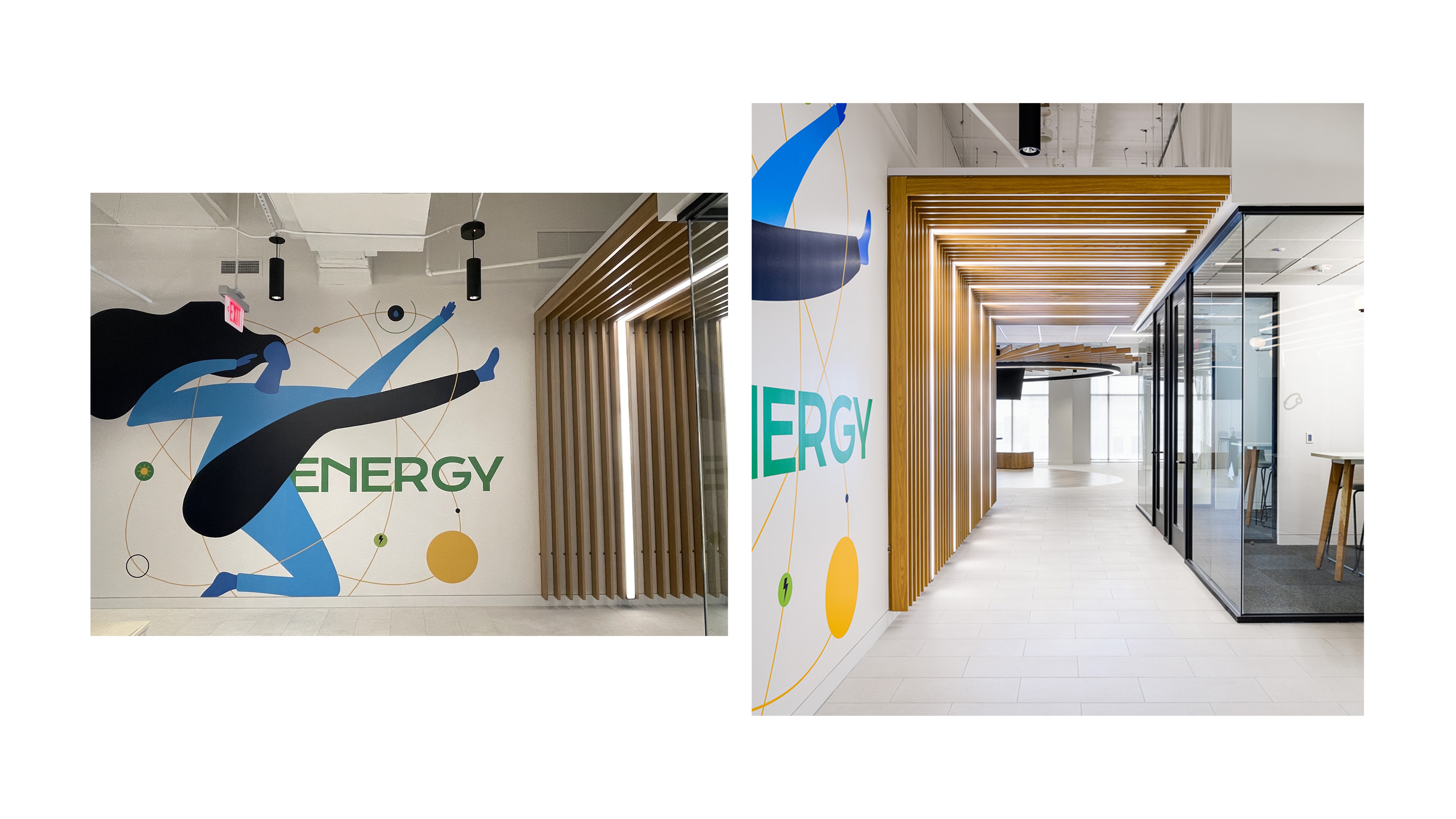 I also designed a series of large-scale murals to amplify the energy of the environment, using environmental graphics to reinforce the Center’s forward-looking spirit.